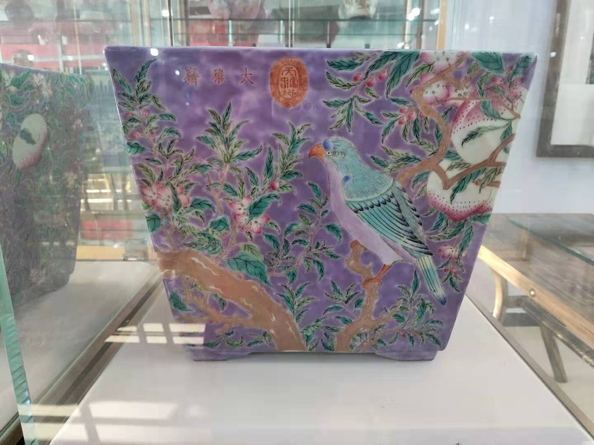 款为“大雅斋”花盆一对。据说为慈溪所用。价值不菲。