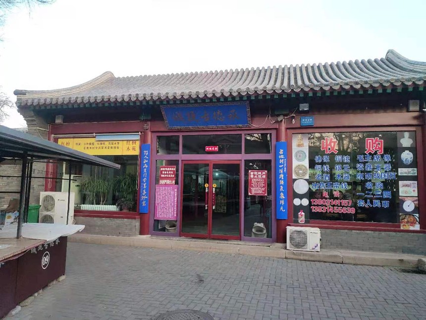 下边这个在 城关门 名叫“承德古玩市场”他没有地摊。外边有几个铁棚子。里边有商户。大约有二三十户。主要钱币。玉器。瓷器等。在块还有“土特产店”还有饭店。